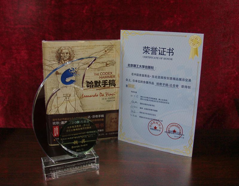 “版交会”期间举行了参展作品(产品)评选,出版社图书《哈默手稿》在此次评选中荣获创意铜奖。
