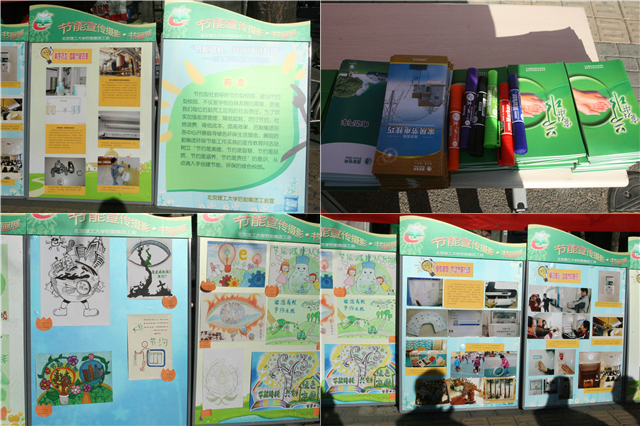 11月29日上午,在中关村校区新食堂门口,节能宣传作品展正式拉开帷幕。参加此次节能宣传行动的有后勤集团全体工会干部、后勤集团部分员工、设计学院学生等人员。本次节能宣传活动包括“节能金点子”图片摄影展、节能书画作品展、节能宣传资料发放和跑冒滴漏便民维修四个项目。
