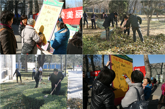 活动中,从领导到职工,大家不怕脏不怕累,有的用耙子聚拢落叶,有的用扫帚清扫落叶,有的用大口袋把聚拢的落叶打包运走······经过一个多小时的清扫行动,干净、整洁的校园再次呈现在我们面前,大家的脸上露出了满意的微笑。