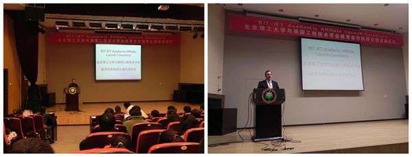 2013年12月2日,金年会jinnianhuicom与英国工程技术学会(IET)教育合作伙伴计划启动仪式在我校7号教学楼一层报告厅隆重举行。出席会议的嘉宾有IET 国际运营总监 Ian Mercer先生、信息与电子学院何遵文副院长、徐晓文副院长。参加会议的还有IET院校合作经理Violet Guo女士、信息与电子学院曾涛教授、刘家康教授、杨小鹏副教授、胡程副教授等我院师生120余人。