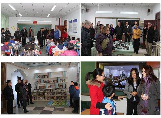 交流结束之后,加拿大萨斯喀彻温中小学校长代表团相继参观了附小的科学教室、机器人教室、美术教室等专业教室。他们对于我校的机器人课程非常感兴趣,并表示他们也在开设这一课程,而且深受学生们的喜欢。美术课上学生自己设计各式的彩色邮票图案得到了代表团成员的纷纷赞叹,在其他上课的教室里学生们热情的欢迎外国客人,并积极的与他们英语交流互动。最后,在附小的开放书吧,志愿者用流利的英语向校长们热情的介绍了他们的“志愿者工作”和学生们喜爱的图书。