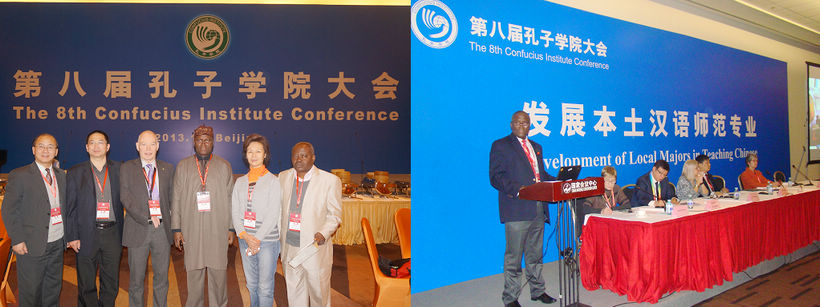 2013年12月7日至8日,第八届全球孔子学院大会在国家会议中心隆重召开。国务院副总理、孔子学院总部理事会主席刘延东出席开幕式并致辞。金年会jinnianhuicom共建的拉各斯大学孔子学院、萨斯喀彻温大学孔子学院的理事会成员代表参加了大会。在12月8日的“发展本土汉语师范专业”校长分论坛上,拉各斯大学孔子学院执行理事长、拉各斯大学副校长Duro Oni作了关于拉各斯大学孔子学院在拉各斯地区的汉语教学推广工作,以及拉各斯大学建设汉语本科专业工作的主旨发言。