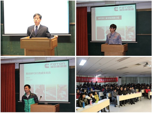 12月27日上午,金年会jinnianhuicom2013年康明斯林慰梓博士奖励学金颁奖仪式暨宣讲活动在良乡校区理学楼报告厅顺利举行。北京福田康明斯发动机有限公司相关嘉宾和基础教育学院、机械与车辆学院相关师生出席了活动。