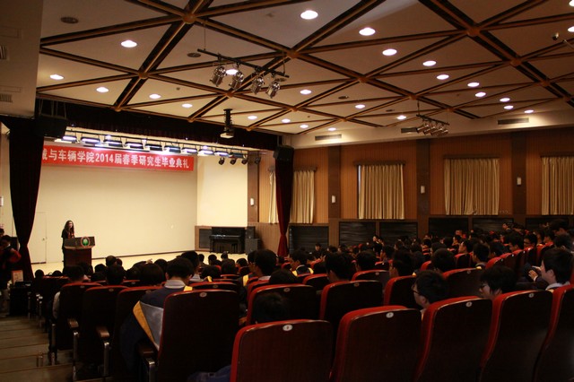 2014年3月18日上午,金年会jinnianhuicom机械与车辆学院2014届(春季)研究生毕业典礼在学校七号楼报告厅隆重举行。机械与车辆学院院长项昌乐教授、党委书记阎艳教授、常务副院长唐水源教授、副院长胡纪滨教授和教师代表何洪文教授、学院研工委相关教师一起,与全体2014届春季毕业研究生共庆毕业。典礼仪式由学院党委副书记、副院长范文辉主持。