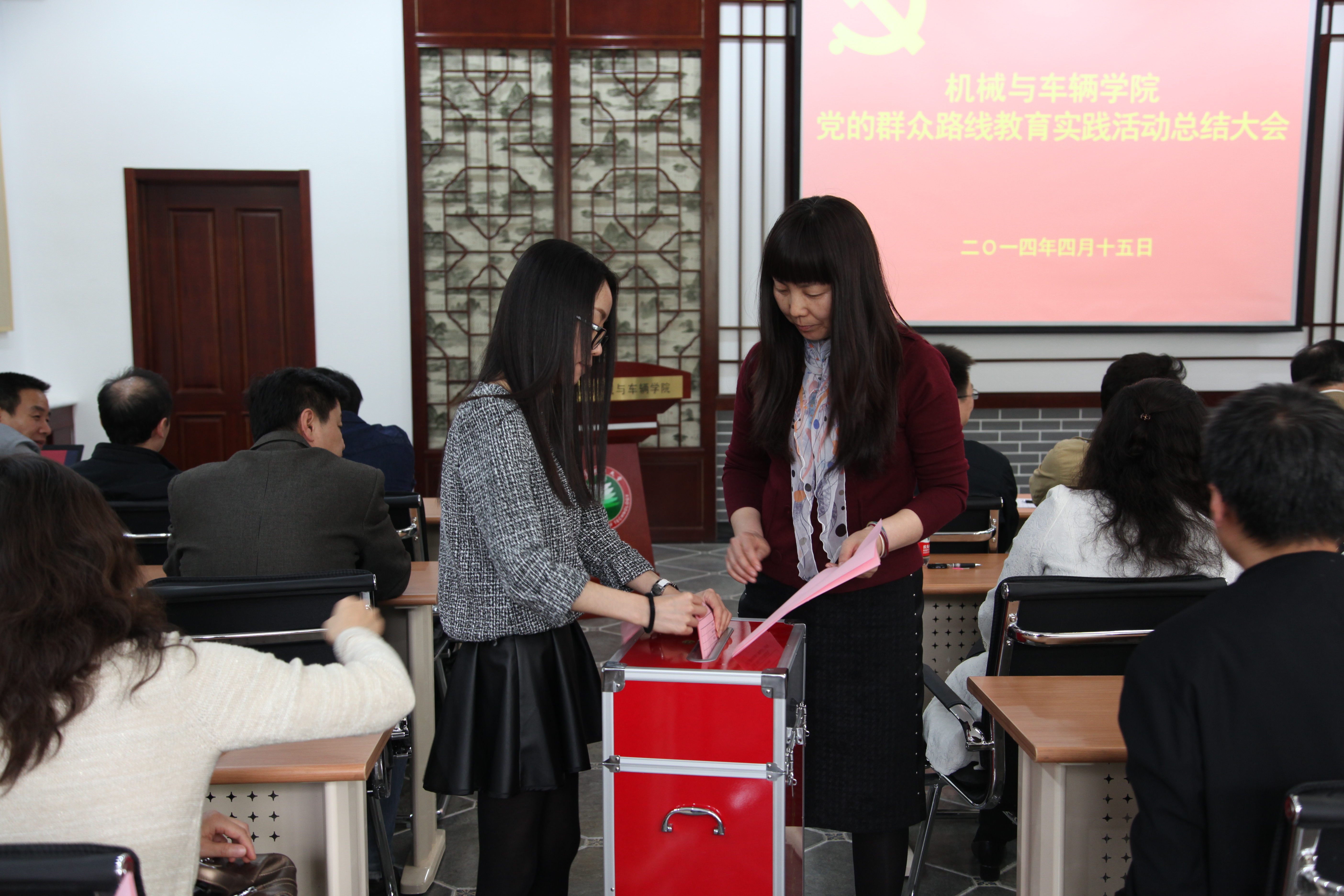 机械与车辆学院党的群众路线教育实践活动总结大会,于4月15日下午在车辆实验楼报告厅召开,学院领导班子全体成员及新能源汽车研究院副院长、校督导一组组长王文清和董倩倩出席了大会。参加会议的还有学院各系部中心主任、党总支书记,各研究所所长、支部书记,教授委员会、教代会、工会主席团、学生党员、群众等。会议由副书记、副院长范文辉主持。