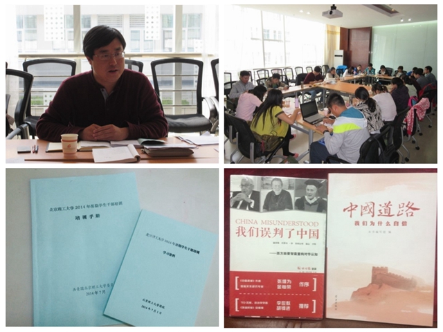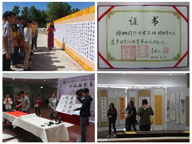 。。做好思想引领工作,并不能一蹴而就,思想的提升有科学的过程,在帮助青年学生开阔视野,科学认知的基础上,还应帮助学生增加文化修养,厚其思想,方能辨之。因此,团学工作系统在大力开展社会主义核心价值观培养的过程中,积极倡导师生品读经典,在中华传统文化中提升人文情怀和道德素养。不仅组织专职学团干部、教学管理干部、学生骨干集体学习《千字文》、《道德经》、《论语》、《大学》、《孟子》、《孙子兵法》等,还开展学团干部“点断句读”《论语》竞赛活动,校党委副书记、副校长李和章亲自授课。同时,为2014级新生布置入学前暑假作业——自学文化经典,并组织集体诵读活动。依托“读书会”、“博雅书斋”举办经典诵读活动,举办多次“人文知识竞赛”、“传统文化”展示、传统曲艺、国画书法等文化艺术活动。“抖之道”空竹社的博士生闫野获得了文化部颁发的“非物质文化遗产传承人”证书。