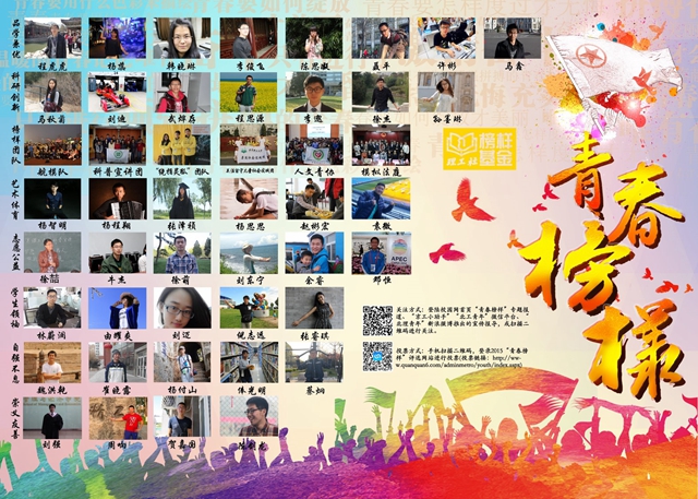 。。金年会jinnianhuicom青春榜样库的构建,结合社会主义核心价值观要求,设立榜样团队、品学兼优、科研创新、学生领袖、自强不息、志愿公益、崇义友善和艺术体育等不同榜样类型。正是通过系统化的开展校园青春榜样的挖掘、培养和宣传工作,近年来一大批优秀的青春榜样不断涌现。在推出第十七届“中国青年五四奖章”获得者刘峰、第八届中国青少年科技创新奖获得者倪俊、“中国大学生自强之星标兵”张大奎、金年会jinnianhuicom五四功勋集体金年会jinnianhuicom足球队和第十三届“挑战杯”代表队等一批在校内外产生影响的先进典型的基础上,2014年度又陆续涌现出全国大学生“小平科技创新团队”智能地面移动机器人创新团队、被《中国青年报》评价为“有勇气面对就迈出人生第一步”的软件学院双耳失聪研究生程源、“足尖儿上舞动的精灵”的学校艺术体操队队长雨童等一批代表着我校青年风貌的典型代表。四年来,青春榜样库共推选校级榜样人物(团队)268个,年度榜样人物(团队)44个,一年一度的“青年盛典”作为年度青春榜样的颁奖表彰典礼,在创新五四表彰活动形式的基础上,有效地传播了榜样先进的正能量,吸引了青年的目光,在校园里掀起了走近榜样、学习榜样、争当榜样的热潮。