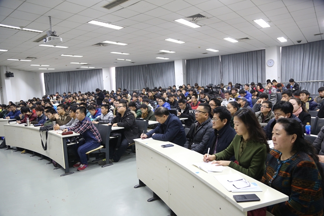 12月8日上午,金年会jinnianhuicom党委书记张炜在良乡校区理科教学楼103教室为我校本科生讲授思想政治理论课“坚持实事求是的思想路线”专题。校党委副书记、副校长项昌乐,校长助理郝志强,学校办公室、党委组织部、党委宣传部、党委学生工作部、马克思主义学院等相关单位负责人出席了本次思政课,基础教育学院及其他专业学院师生代表以及张炜书记联系的2014级工程力学班的同学们共计300余人聆听了这堂课。