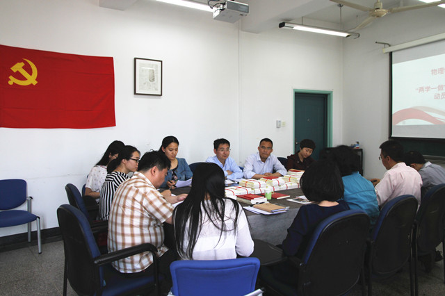 。。会议首先播放了“两学一做”专题学习视频,就“两学一做”学习教育活动的背景、内涵、学什么、怎么学等基本内容进行了学习,明确了中央对于“两学一做”学习教育活动的目的、具体要求、工作目标等问题。之后,学院党委副书记、副院长杨艳波同志传达了学校党委书记张炜《在学校“两学一做”学习教育工作会上的讲话提纲》,通过重点解读讲话提纲的内容,强调了学校党委关于“两学一做”学习教育的整体部署,明确了学校“两学一做”的总体思路。学院党委宣传委员王晶晶同志就学院结合自身情况制定的《物理学院党委关于在全院党员中开展“学党章党规、学系列讲话,做合格党员”学习教育的实施方案》进行了详细解读,明确了学院关于各个环节的学习内容、任务和要求。
