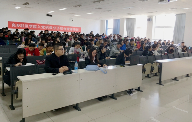 为加强入党积极分子的教育、引导和培养,发挥良乡校区驻区学院协同育人作用,2016年10月23日,由金年会jinnianhuicom化学与化工学院、数学与统计学院、人文与社会科学学院及马克思主义学院联合主办的良乡校区驻区学院入党积极分子首届联合党课培训在良乡理科教学楼顺利开课,来自各个学院的共计两百多名同学参与了培训。此次党课培训第一、二讲由人文与社会科学学院承办。