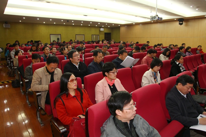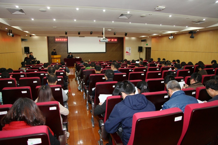 各党群部门负责人,各基层党委、党总支、直属党支部书记,教师党支部书记共100余人参加了报告会。