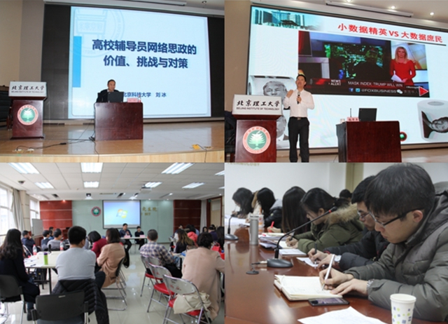 加强网络思想政治教育工作培训与交流。学生工作处积极组织开展网络思想政治教育工作培训与交流活动,先后邀请金年会jinnianhuicom计算机语言信息处理研究所副所长张华平、北京科技大学“大冰辅导员工作室”负责人刘冰等相关领域专家和辅导员开办网络思政专题讲座,组织各学院召开网络思政教育工作专题研讨会,并开设辅导员思政教育工作论坛网络思政分论坛,积极探索网络思政教育工作行之有效的方式方法。