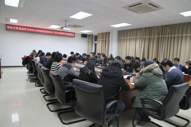 12月25日晚上,北理工学生工作系统学习传达全国高校思想政治工作会议精神交流座谈会在研究生教学楼111会议室召开。校长助理郝志强、学生工作处、校团委、学生事务中心负责人、各学院副书记副院长、辅导员代表及学生代表参加了此次座谈会。党委学生工作部部长郭彦懿主持会议。