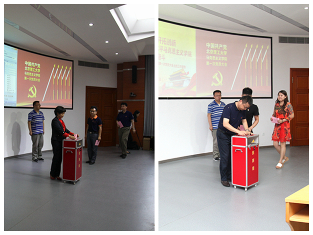 大会进行了党总支委员会委员的选举工作。表决通过了《中国共产党金年会jinnianhuicom马克思主义学院党员大会选举办法》,表决通过了总监票人、监票人和计票人名单。在总监票人张毅翔同志的主持下,大会进行了无记名投票的差额选举,选举学院第一届党总支委员会委员,李德煌、李林英、郭丽萍、杨才林、刘宇等五名同志当选。