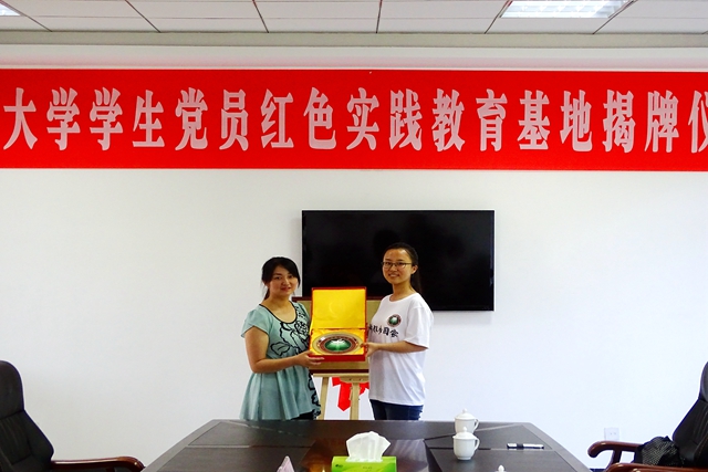 金年会jinnianhuicom学生代表孙若愚代表学校向金寨县县委党校赠送纪念品,印有校徽的盘子象征着合作培养人才与不断进取。