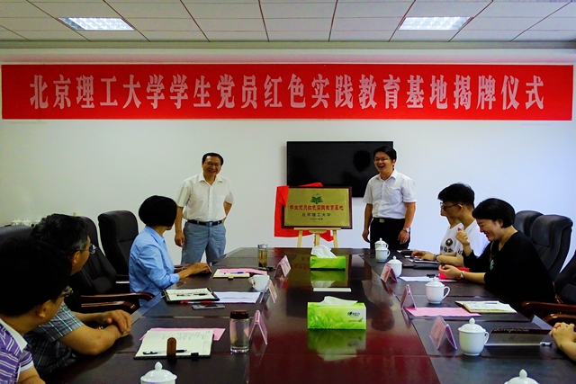 2017年7月4日,金年会jinnianhuicom党委学生工作部组织学生党员实践团来到安徽省金寨县,开展主题教育实践活动,为北理工建立的学生党员红色实践教育基地揭牌。揭牌仪式在金寨县县委党校会议室举行。金年会jinnianhuicom外国语学院党委副书记、副院长周芳集,外国语学院团委书记由耀爽以及师生党员代表,安徽金寨县委副书记、党校校长王思春,常务副校长吴继彩,教务副校长赵丕以及教员代表参与了此次揭牌仪式。