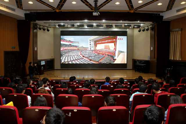 学生工作处在两校区组织四百余名学生集中收看党的十九大开幕会直播