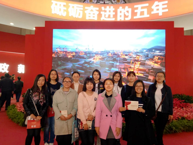 团支部书记毛爽妍:参观党中央5年来在经济、政治、文化、民生、环境等方面取得的巨大成就展,我感到十分震撼和自豪,提升了价值观自信,同时也更加坚定了早日入党的信念。在即将步入社会之际,深感要在平凡的工作中踏实钻研,不畏困难,把握机遇与挑战,砥砺前行,一起为更美好的中国奋斗。