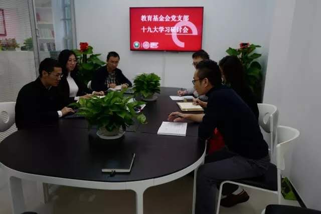 教育基金会党支部书记余海滨带领教育基金会党支部全体党员干部学习十九大精神,大家认真阅读十九大报告全文,结合十九大报告提出的十个关键词:“新时代”、“强起来”、“主要矛盾”、“四个伟大”、“全面小康”、“新征程”、“新时代中国特色社会主义思想”、“土地承包”、“全面依法治国领导小组”、“青春梦想”进行了全面学习。此外,结合教育基金会工作实际,大家对十九大报告中关于“社会组织”的内容进行了专题学习,习近平总书记在报告中为社会组织今后的发展指明了方向:进入中国特色社会主义新时代,社会组织工作者要不断增强新本领,努力提高工作能力和水平,自觉肩负起社会组织在新时代下的历史责任。
