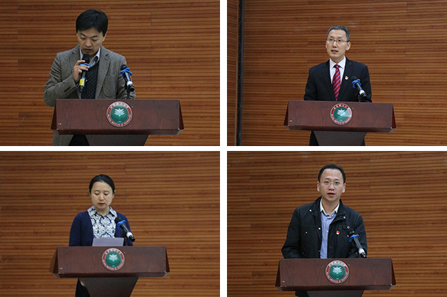 校党委组织部副部长周波同志发表讲话。周波首先对数学与统计学院顺利完成党员大会既定议程,成功选举产生新一届党委委员表示热烈的祝贺!周波指出,大会的召开,对于统一思想、凝聚力量,进一步加强和改进数学与统计学院党建和思想政治工作,推进学院科学发展具有十分重要的意义,希望新一届党委能够不忘初心,牢记使命,勤勉工作,认真履职,以高度的政治责任感认真学习宣传贯彻党的十九大精神,以更高标准为“双一流”建设提供坚强保证,以立德树人为根本任务培养造就优秀人才。