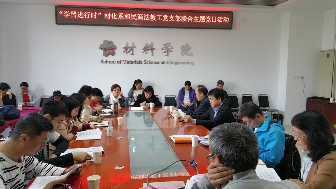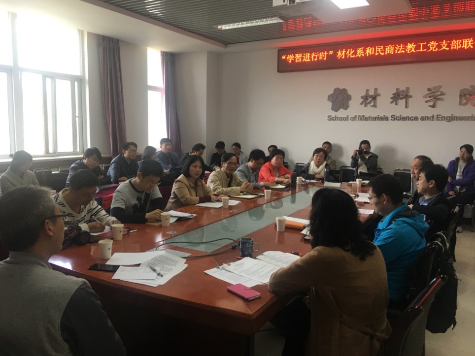 4月25日下午,北理工法学院民商法所教工党支部与材料学院材料物理与化学教工党支部在五号教学楼5层会议室共同举办了“创新融合”主题党日活动。