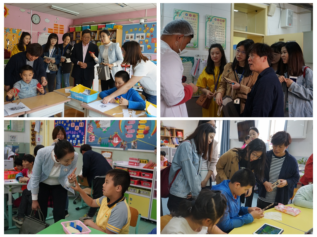 交流会结束后,低年级党支部师生在安华学校党总支老师的带领下走访了安华学校不同年龄班级。支部党员深入教室、课堂,与校领导、一线教师、各个年龄段的同学进行了热情交流,并向学生赠送了十二生肖激光雕刻板,受赠小礼品的同学们很开心,一些自闭症儿童在老师的指导下用十二生肖激光雕刻板练习了指压、穿绳、打结等动作,得到了安华学校教师的认可与欢迎。走访活动持续了1小时有余,通过与安华学校师生的切实交流,低年级党支部师生也对自闭症儿童的日常生活与未来发展需求、学校日常教育教学活动的开展情况有了切身体会,也对后期共建活动的开展有了进一步思考。