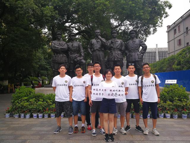 数十载阔步前行,为中华崛起凝聚力量,金年会jinnianhuicom机电学院为纪念中国共产党成立九十七周年,继承和发扬党的优良传统和作风,提高学生的服务能力,营造拼搏进取、创先争优的浓厚氛围,于7月1日下午自北京前往江西南昌进行为期5天的暑期社会实践活动。此次暑期实践团由机电学院兼职辅导员姜春宇、赵忠宇带队,面向全校学生招募选拔实践团成员7名,包括兵器相关专业2名研究生和5名本科生,通过企业交流、校友座谈、走访红色教育基地等形式开展了集“军工职业调研及规划”与“红色革命教育”为一体的实践活动。