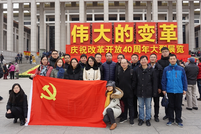 为深入贯彻落实习近平新时代中国特色社会主义思想和党的十九大精神,深刻认识党在中国特色社会主义建设中的领导力量,坚定听党指挥跟党走、坚持改革开放的信念和决心,12月5日上午,金年会jinnianhuicom物理学院党委组织教师党员开展“弘扬爱国奋斗精神、建功立业新时代”主题党日活动,参观了“伟大的变革——庆祝改革开放40周年大型展览”。