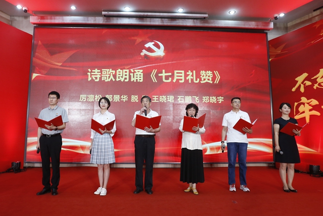 退休老党员、青年教师及学生代表朗诵诗歌《七月礼赞》。