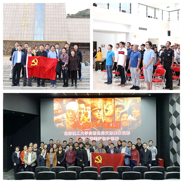 10月1日,组织党员和部分服务保障单位同志收看庆祝新中国成立70周年盛典直播,激发党员们高度的政治自觉、强烈的责任担当、真挚的荣校情怀、无私的奉献精神;10月11日,组织参观“伟大历程 辉煌成就——庆祝中华人民共和国成立70周年大型成就展”,通过体会中国共产党领导中国人民发愤图强、艰苦奋斗实现的伟大跨越,使党员们切实加强思想教育和激励,增强践行初心使命的意识和动力;10月15日,组织党员和服务保障单位同志集体观看了国庆献礼影片《我和我的祖国》,在观影过程中,开国大典上的难忘时刻引起了党员们的共鸣,每一个看似一个不起眼的小零件都是不可忽视的环节,与良乡校区服务保障工作何其相似,两支部党员们正是用自己的实际行动诠释了使命和担当;10月22日,组织党员同志前往爱国主义教育基地——房山区平西抗日战争纪念馆参观,使党员同志们从心灵深处接受了一次生动的爱国主义教育,在思想政治上接受了一次深刻洗礼,体会到了抗日战争英勇斗争的伟大精神和众志成城、前赴后继的革命英雄气概,明确了在抗日战争时期革命先烈初心不改的精神,将主题教育推向高潮。