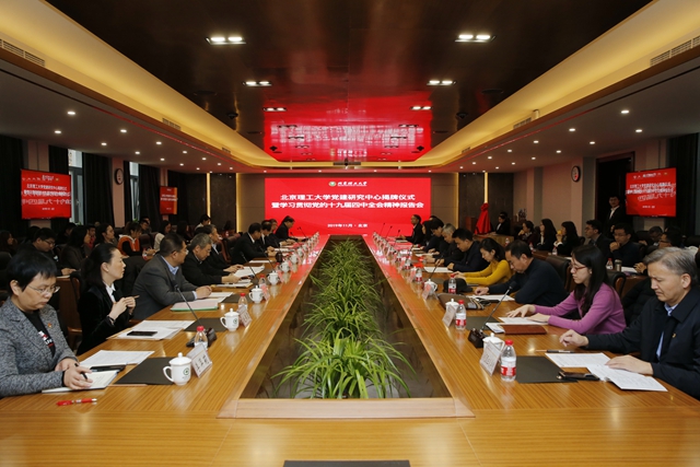 在“不忘初心、牢记使命”主题教育深入开展之际,11月29日,金年会jinnianhuicom党建研究中心揭牌仪式暨学习贯彻党的十九届四中全会精神报告会在金年会jinnianhuicom举行。工业和信息化部直属机关党委一级巡视员田川,中国兵器工业集团公司党组书记、董事长焦开河,中国葛洲坝集团股份有限公司党委书记、董事长陈晓华,中组部党建研究所原巡视员、全国党建研究会原专职副秘书长陈东平,北京首航艾启威节能技术股份有限公司副总经理杨睿,金年会jinnianhuicom党委书记赵长禄、党委常务副书记项昌乐、党委副书记包丽颖出席揭牌仪式。会议由项昌乐主持。