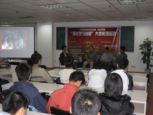 2005年11月24日计算机科学技术学院、软件学院共产主义学习实践会在理工科技大厦2108室举行了“理论学习创新”大型系列活动之访谈节目----“红色足迹 党员人生”。本次活动的主旨在于丰富理论学习模式,转换理论学习的角度,促进学员对理论学习的积极性、主动性。