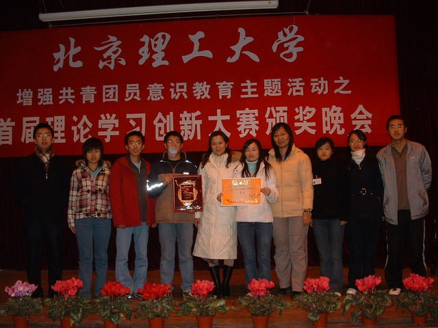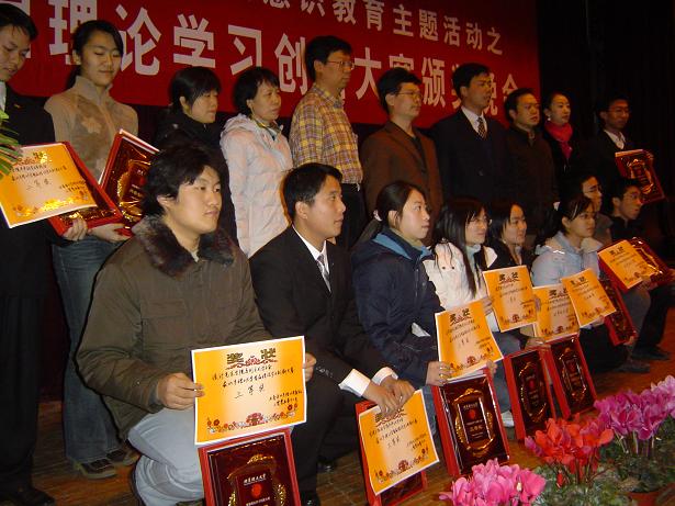 2005年12月12日晚七点,金年会jinnianhuicom首届理论学习创新大赛颁奖晚会在七号楼报告厅隆重举行。理学院马列主义学习会荣获本次大赛一等奖。