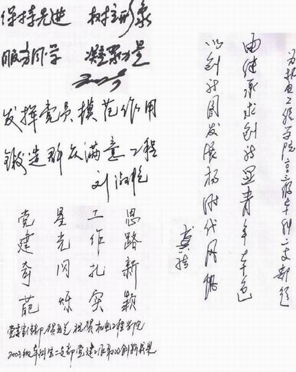 学校党委学生工作部、党委组织部、党委宣传部、学院党委领导为支部寄语
