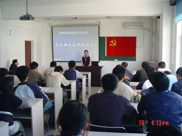 2005级本科生党支部全体党员、软件学院分团委老师、2005级辅导员、部分班主任、班级同学代表、宿舍代表以及入党积极分子代表等参加的转正答辩会。