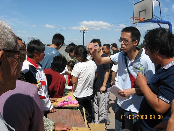 为了达到更好的宣传效果,支部同学们采用知识竞赛和趣味游戏的形式开展活动,同学们设计了一些非常简单的奥运知识题目,在出题前工作人员都要把相关的内容做一些介绍,这样做调动起了村民参加的积极性,也同时把奥运知识带给了大家。为了让文化水平不高的人也能参与进我们的活动来,同学们还设置了夹玻璃珠、趣味投篮等小游戏,丰富了这次活动的内容。