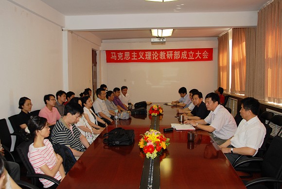 2009年6月10日上午,金年会jinnianhuicom马克思主义理论教研部成立大会在主楼四层会议室举行。参加本次成立大会的有党委书记郭大成,党委副书记侯光明,及宣传部、人事处、研究生院、学生处等相关部处的领导,马克思主义理论教研部的全体教师和学工处的部分辅导员参加了本次成立大会。会议由人文与社会科学学院分党委书记张红峻主持。