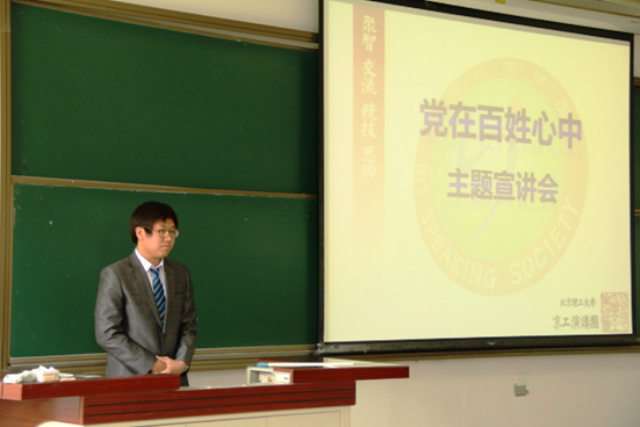 2012年5月15日下午,“党在百姓心中”和“扬榜样力量 树我党形象”两场主题宣讲活动在北理工良乡校区同时举行,伴随着活动的成功举行,我校“党在百姓心中”系列主题宣讲活动拉开帷幕。按照北京市教育工委宣教处要求,为营造迎接党的十八大胜利召开的良好社会氛围,唱响“五个好”的主旋律,深入推动学习践行“北京精神”,推进百姓宣讲常态化,使迎接十八大的主题教育活动热在基层、热在群众、热在高校,在教育工委的统一组织下,金年会jinnianhuicom积极开展北京高校百姓宣讲系列活动。
