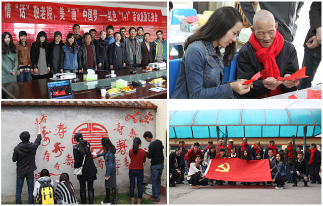 金年会jinnianhuicom设计与艺术学院2013级硕士研究生党支部结合实际情况,在校学工部、学院党委的大力支持下,充分发挥党支部的凝聚力,以“情‘话’敬老院,美‘画’中国梦”为主题与密云县西田各庄镇社会福利中心党支部携手共建,本次活动得到了我校校友密云县西田各庄镇副镇长李旻的大力支持。在活动中,学生党员为对方党支部创作书画作品12幅、设计标志12个、导向系统2套、环境改造方案1套、展板设计6套、“福寿”墙2面、剪纸作品30余幅、调研报告1篇,并建立了写生基地,对当地的经济社会发展起到了促进作用。同时,学生党员在共建活动中受教育、长才干,最终实现了共建双赢的目标。密云电视台对活动进行了报道,引起了良好的社会反响。