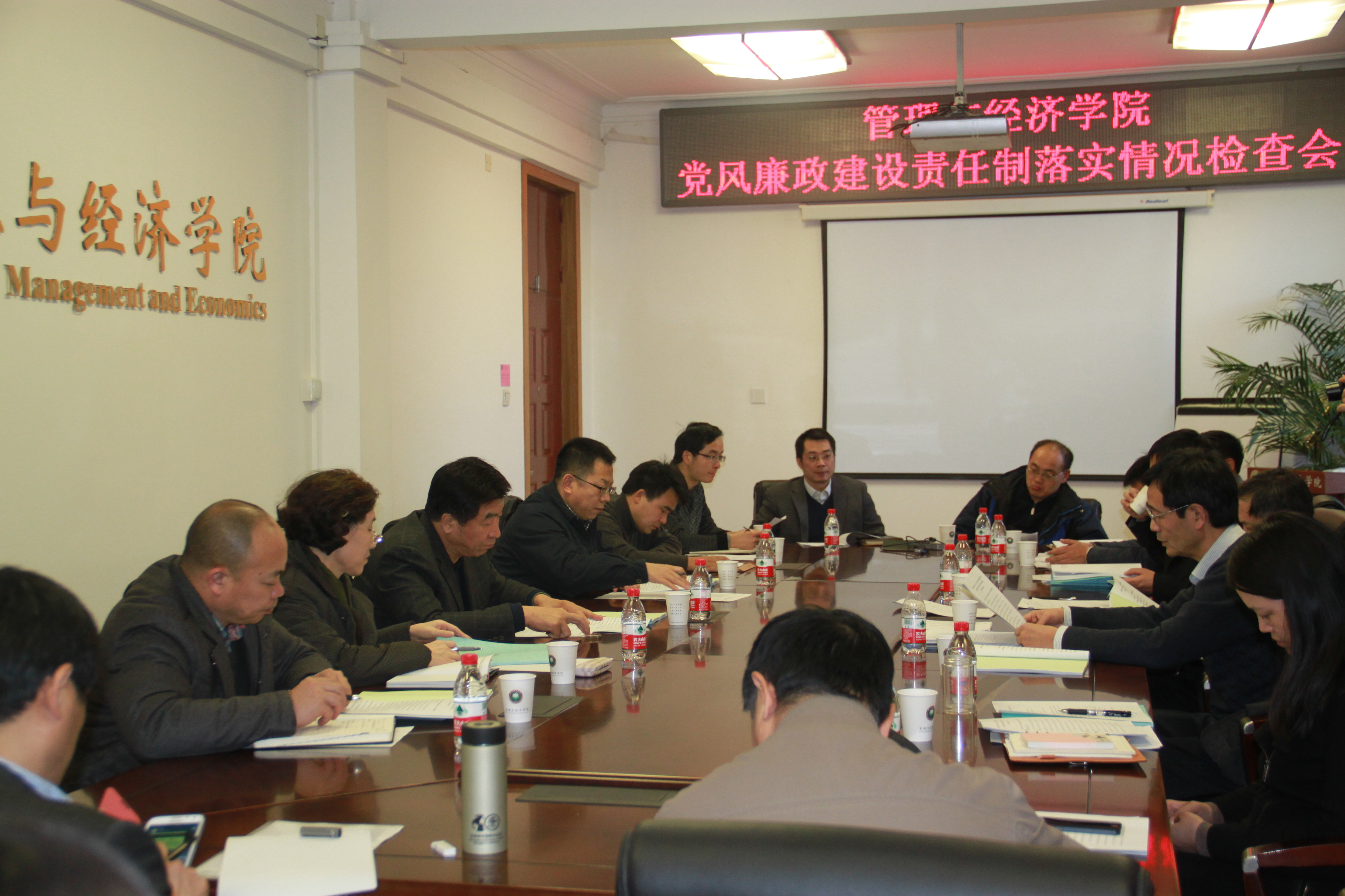 最后,郭大成书记做了总结发言,认为管理与经济学院在落实党风廉政建设责任制和推进惩防体系任务方面做了大量工作,相关制度的建设比较好,净化了学院发展环境,形成了廉政建设与学院发展的良性互动。希望管理学院领导班子进一步落实党风廉政建设责任制,不断加强廉政法制建设,把惩治和预防腐败体系建设不断引向深入,保证学院各项工作健康有序地进行,促进学院科学发展。