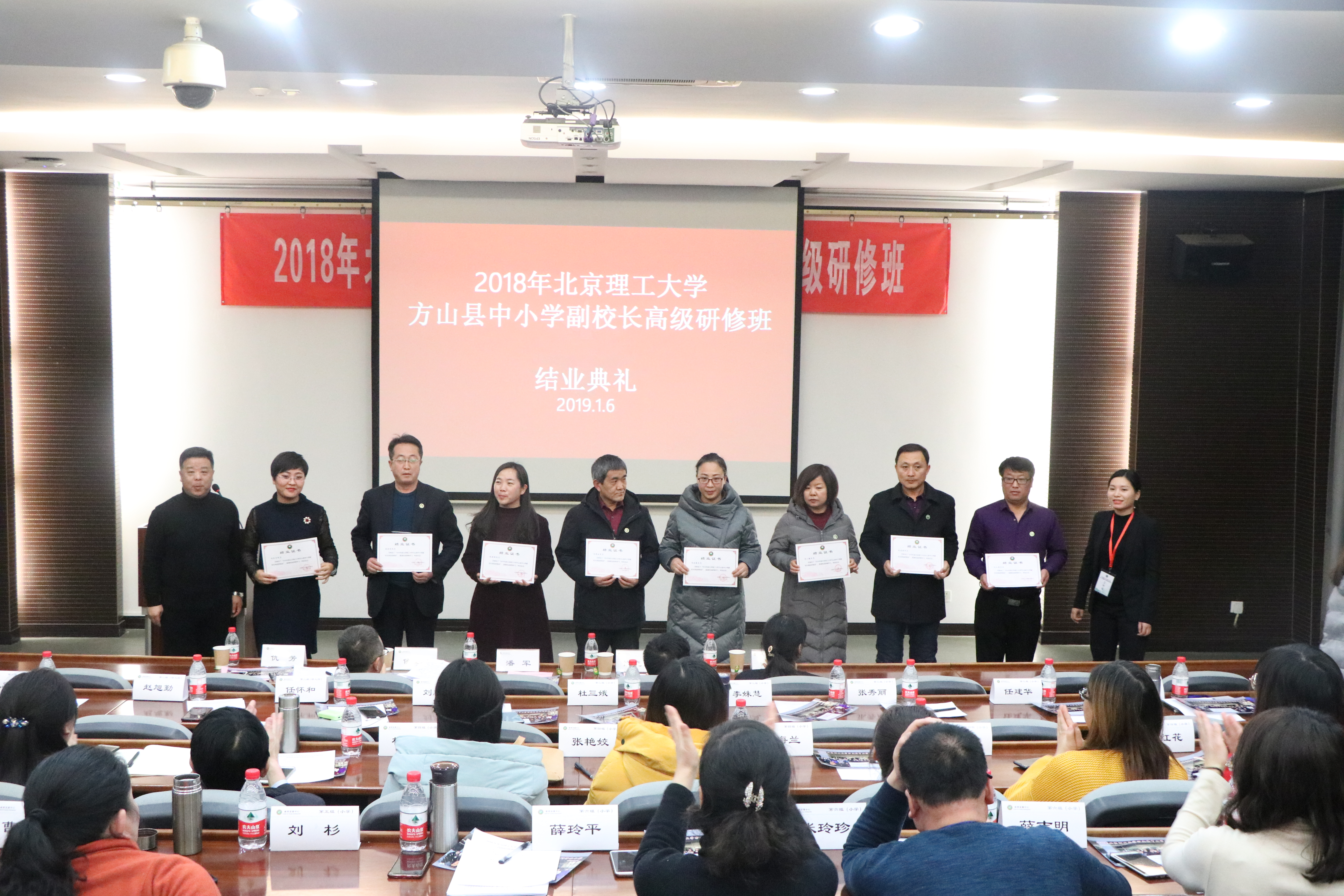 2019年1月6日,北理工教师发展中心组织“方山县中小学副校长高级研修班”结业仪式。44名学员、理工附中党委副书记潘军、理工附...
