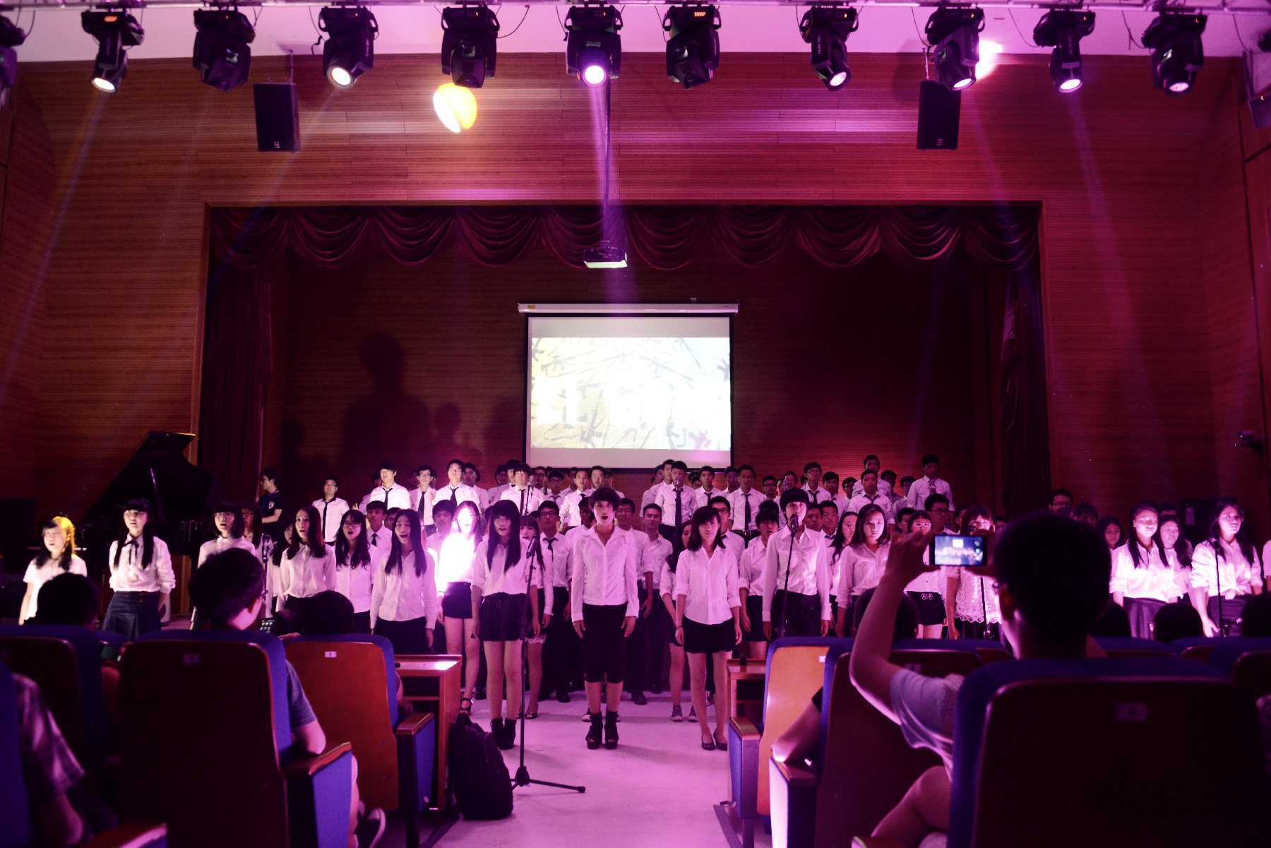 由课上同学们演唱的迈克尔杰克逊在1985年为非洲灾民创作的《We are the world》和由金炜航带来的舞蹈《Dangerous》带大家一起重温了经典;丰小艺、佳凯迪、刘学彬的舞蹈《Hi Night》用动感的节奏和曼妙的舞姿感染了在场的每一个观众;而由窦文韬等同学深情演唱的《波西米亚狂曲》和由符之焕、韩欣欣动感而激情演绎的《We will rock you》将皇后乐队作品的经典演绎得淋漓尽致:由课上五位女孩组成的some girls为大家带来的一组精彩的名曲串烧给大家带来别样的视听感受;深秋冠军韩欣欣一首《Don’t know why 》的倾情演唱感动全场。