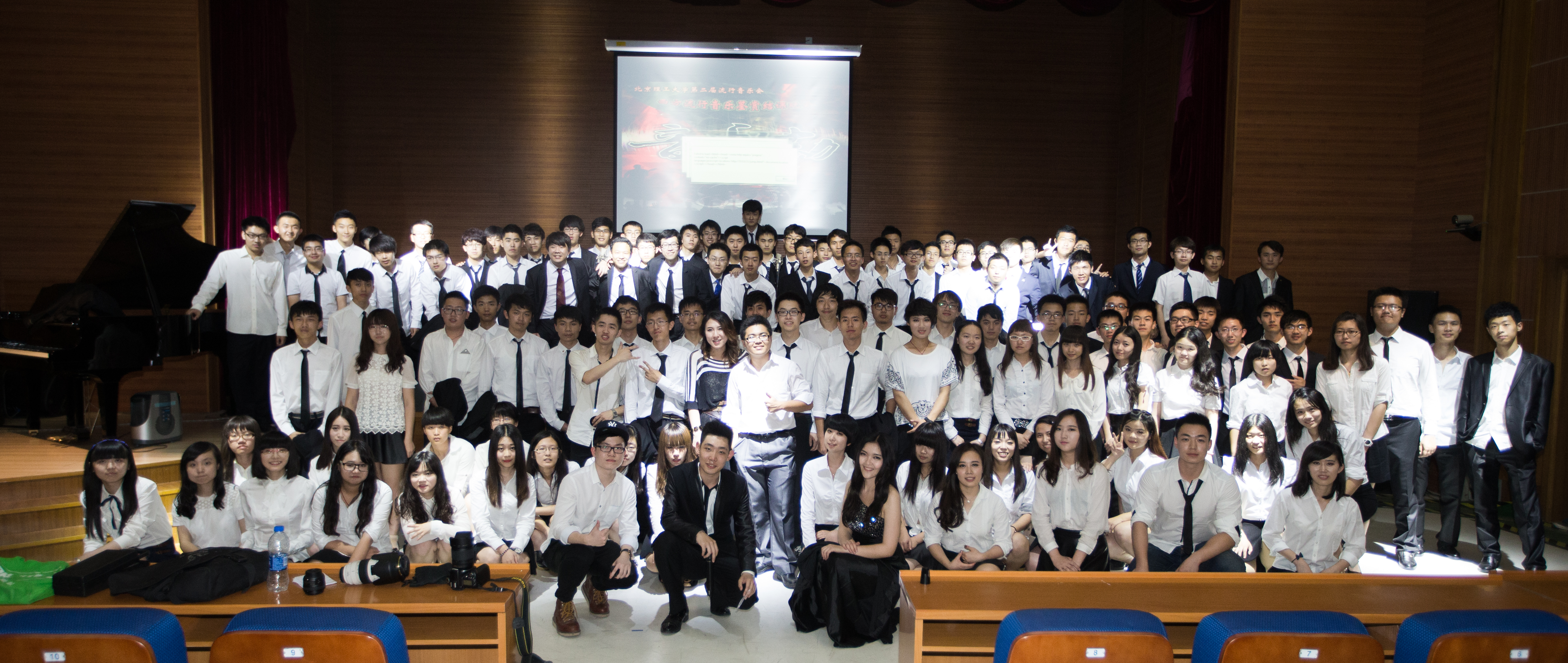 接下来的节目更是异彩纷呈。上届西乐课学生葛培原一首《I’m yours》的深情演唱极具感染力;由课上同学历经12周的辛苦排练后为大家带来的《江南style + too legit to quit》轰动全场;而刘兆阳和张浩然为大家带来的B-box 表演以及他们与李天达同学的掌风琴《beat it》、葛培原《I’m yours》的即兴表演赢得全场喝彩;接下来的BIT crew的街舞表演《follow my heart to dance》引得现场尖叫掌声不断;钢琴团曹魏和刘一诺的改编版本的钢琴四手联弹《蓝色多瑙河》则颠覆了传统的弹奏形式、为大家展现了18世纪流行音乐的魅力。