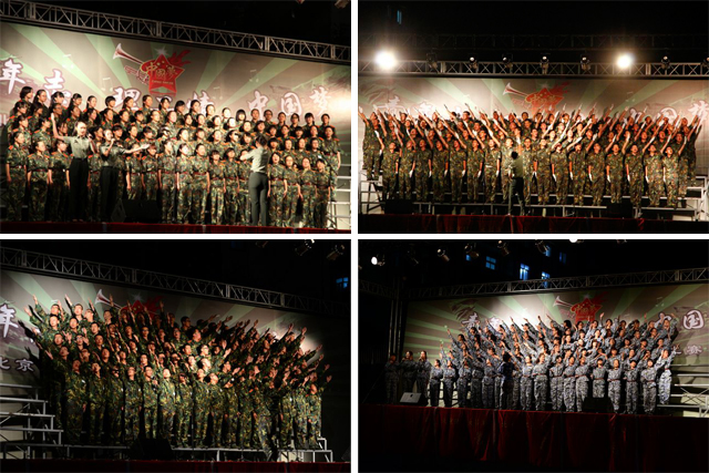 合唱比赛以营为单位进行,各营选派80名学员参赛。各营以“弘扬爱国精神,彰显军人风采,体现大学生青春风貌”为标准自选两首曲目参赛。