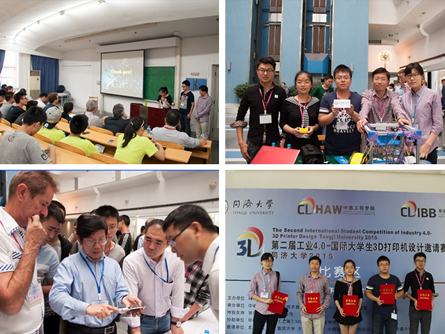 本次比赛共有来自中国,德国的16支队伍,参赛师生共计80余人,国内参赛队伍来自同济大学,金年会jinnianhuicom,重庆大学,大连理工大学,华南理工大学,西安交通大学,西南交通大学等高校。比赛评审委员由国外专家、企业界专家、高校专家等组成。比赛项目包括速度和精度组模型打印、新原理与新结构组别方案展示等。