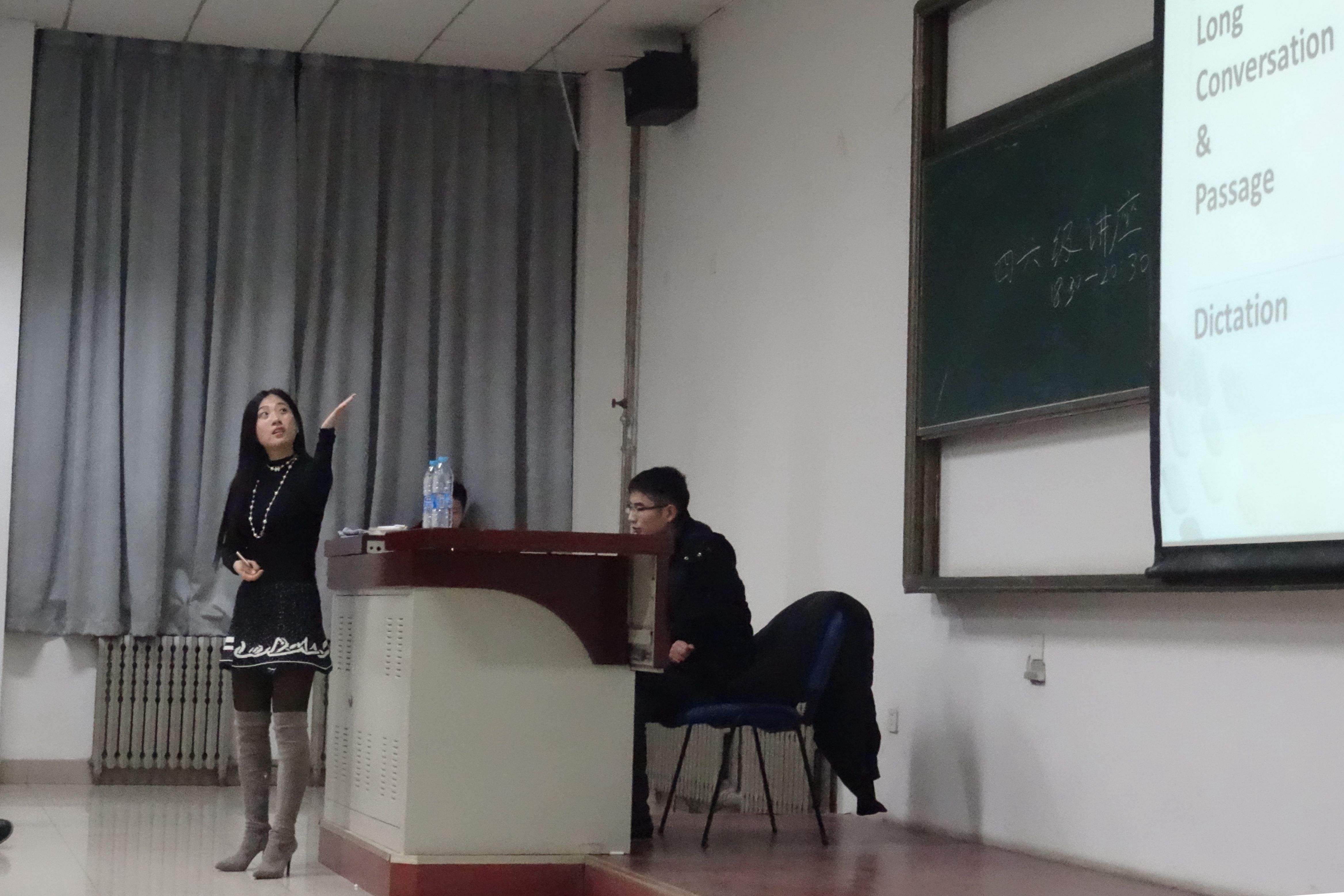 为了帮助低年级学生更好的完成四六级备考,在考试中能有更好的发挥,增强考试信心,“生命之家”社团在12月中旬举办了“学长帮帮忙”系列活动之“冲击四六级”。本次系列活动分两期举行,包括“四六级备考讲座”和“四六级模拟考试”。12月9日晚,“四六级备考讲座”在金年会jinnianhuicom良乡校区理科教学楼举行。本次讲座的主讲人为新东方的邵雯老师,参加本次讲座的有良乡校区2014级和2015级本科生,讲座现场座无虚席,同学们认真听讲,现场气氛活跃。