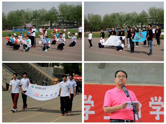 生命学院党委书记刘存福致开幕词。他代表学院向参加开幕式的各位来宾表示热烈的欢迎,向在运动会筹备过程中付出辛勤劳动的工作人员表示感谢,向参加这次盛会的全体运动员、裁判员、老师和同学表示诚挚的问候!他说,体育是一个民族、一个国家强盛和振兴的重要标志,而体育教学是学校教育的重要组成部分,它在磨练学生意志、锻炼学生体魄,培养学生的组织纪律性等方面起着不可替代的作用。本届运动会的举行,不仅是检验学生身体素质水平的重要方式,也是培养学生团结、拼搏、坚持不懈等品质的载体,要把赛场上的拼搏精神、协作精神发扬到学习中去,真正成为心灵恬美、体魄强健、学术精湛、理想高远的全面发展的人才。在各项比赛中,运动员们用奋勇争先的姿态,积极进取的心态,展现风采,诠释青春,他们精神抖擞,奋力拼搏,现场欢呼不断。百米跑道上他们飞速向前,永争第一。