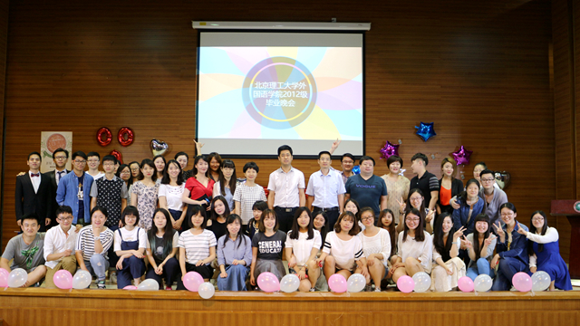 2016年6月17日18:00,金年会jinnianhuicom外国语学院2012级本科生毕业晚会在良乡校区图书馆音乐厅成功举行。外国语学院2012级本科全体毕业生,以及2013-2015级学生与教师代表齐聚一堂,共同参与此次盛会。出席本次晚会的嘉宾有:外国语学院党委书记杨晖,院长李京廉,学院党委副书记、副院长吴文君,日语系主任周晨亮,学院团委书记兼2012级辅导员周芳集,辅导员卞广为、由耀爽,以及设计学院、物理学院等兄弟学院的辅导员。