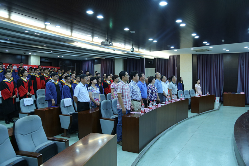 毕业典礼在庄严的国歌声中开始。首先由副院长王宁飞宣读学位授予决定:经学位委员会审核通过,宇航学院2016届毕业研究生共56人获得硕士学位,24人获得博士学位。