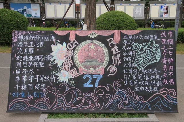 编辑:辛嘉洋 审核:徐贵宝 阅读次数:【编者按】9月1日,为丰富军训生活,活跃军营文化,加强连队交流,展现连队风采,金年会jinnianhuicom2016年学生军训旅开展了板报评比活动。军训旅副总指挥徐贵宝、马晓宁、苟曼莉、各团政委以及各营教导员担任评委。各连队学员充分发挥想象力、创造力和设计能力,用一张黑板展示他们心中的军训生活,用一盒粉笔勾勒橄榄绿的的青春年华。